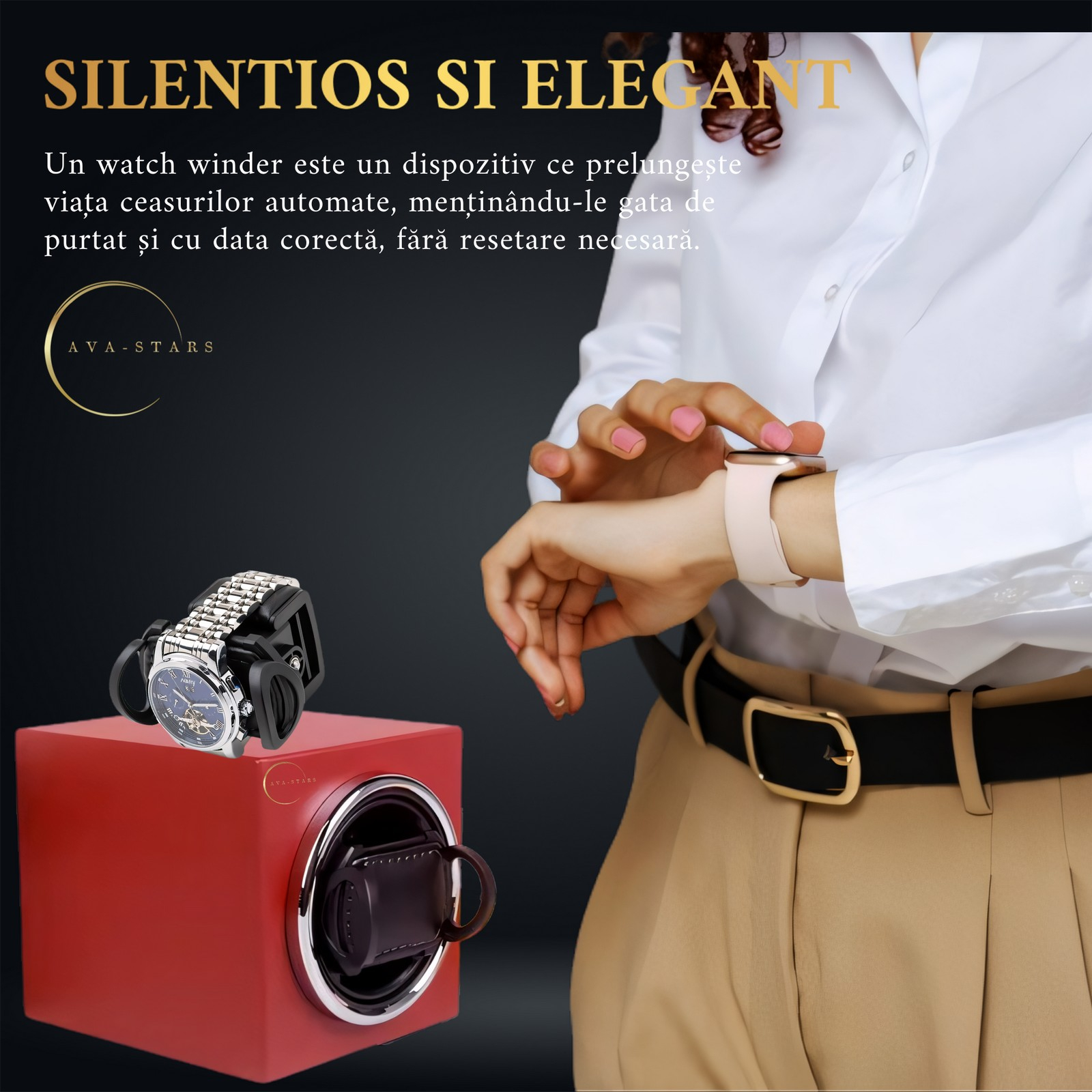 • Silențioasă și eficientă: Funcționarea discretă îți permite să te concentrezi pe sarcinile tale, în timp ce ceasul tău este păstrat în condiții optime.
