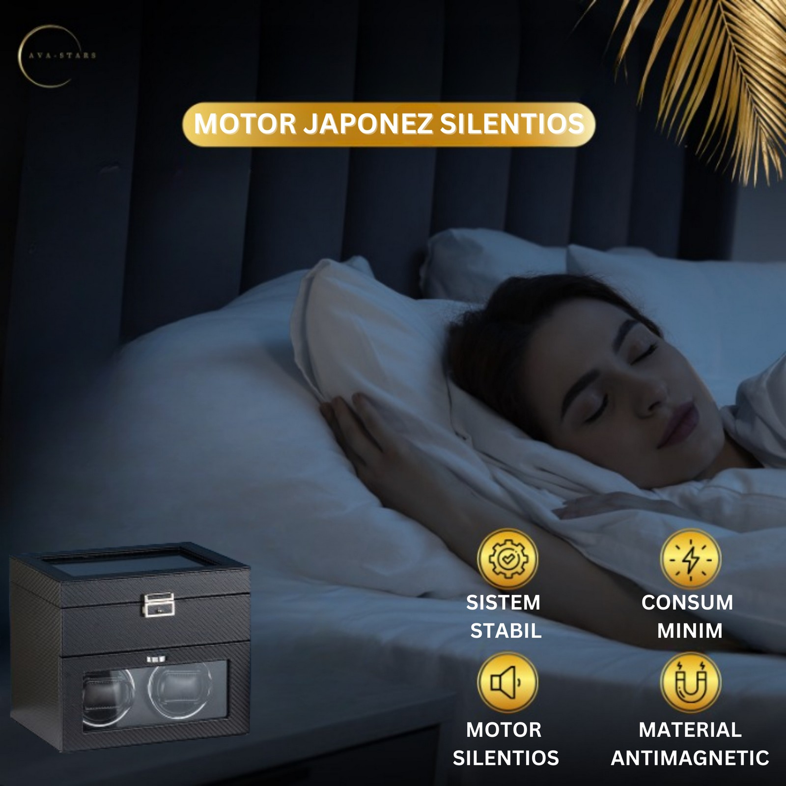 Cutie automata pentru ceasuri Ava Stars Mereu gata de purtat Watch Winder Silentios si Eficient Rotator ceasuri automatice Features Dispozitiv intors ceasuri automatice Cutie întors ceasuri - Ava Stars Cutie de lux pentru ceasuri automatice - Testimoniale Cutie ceasuri automatice Ava Stars CTA