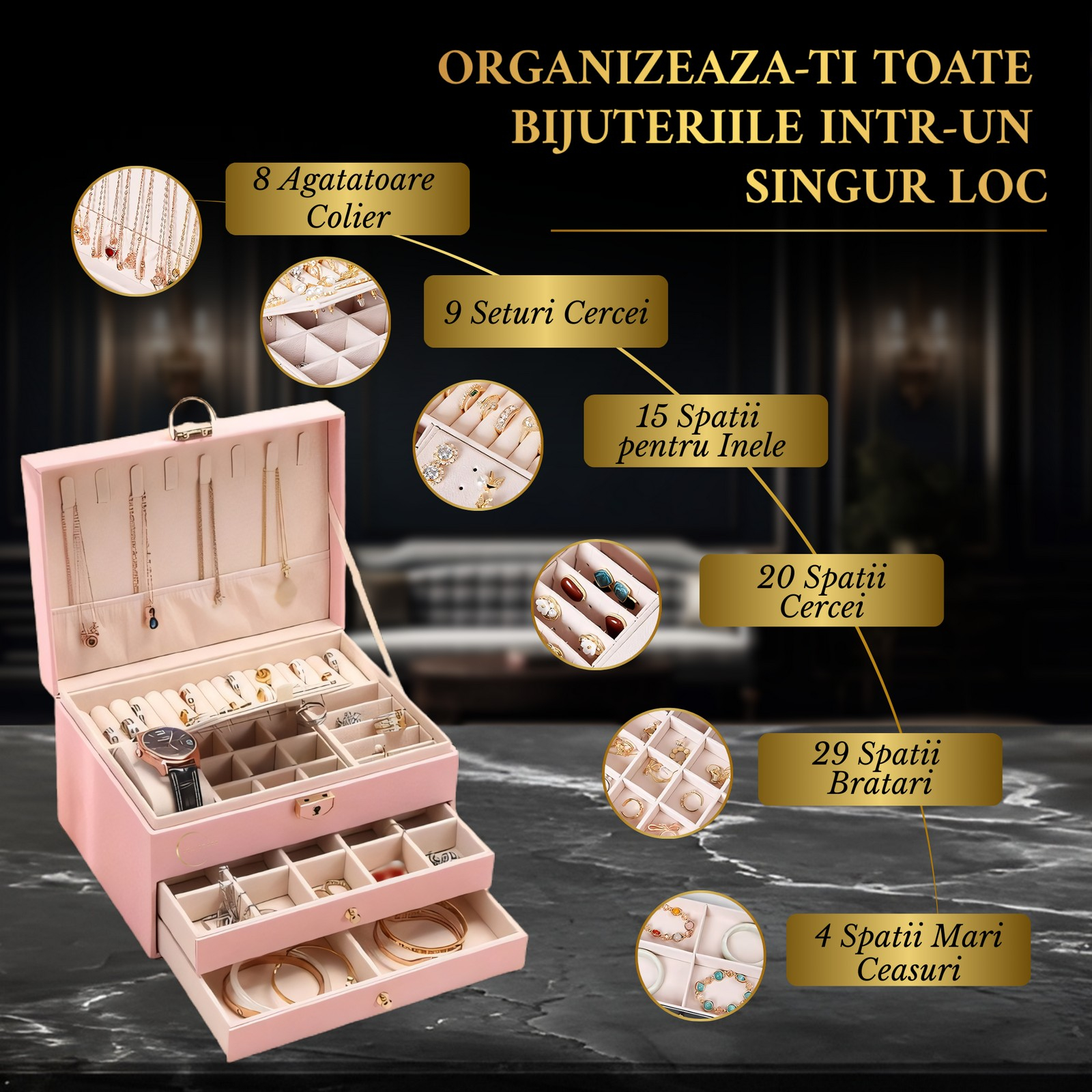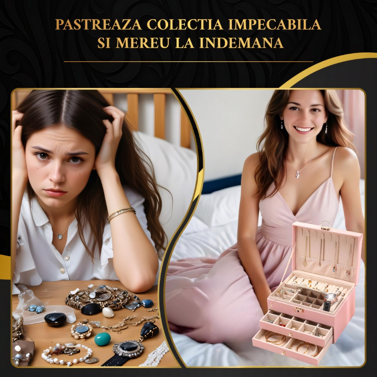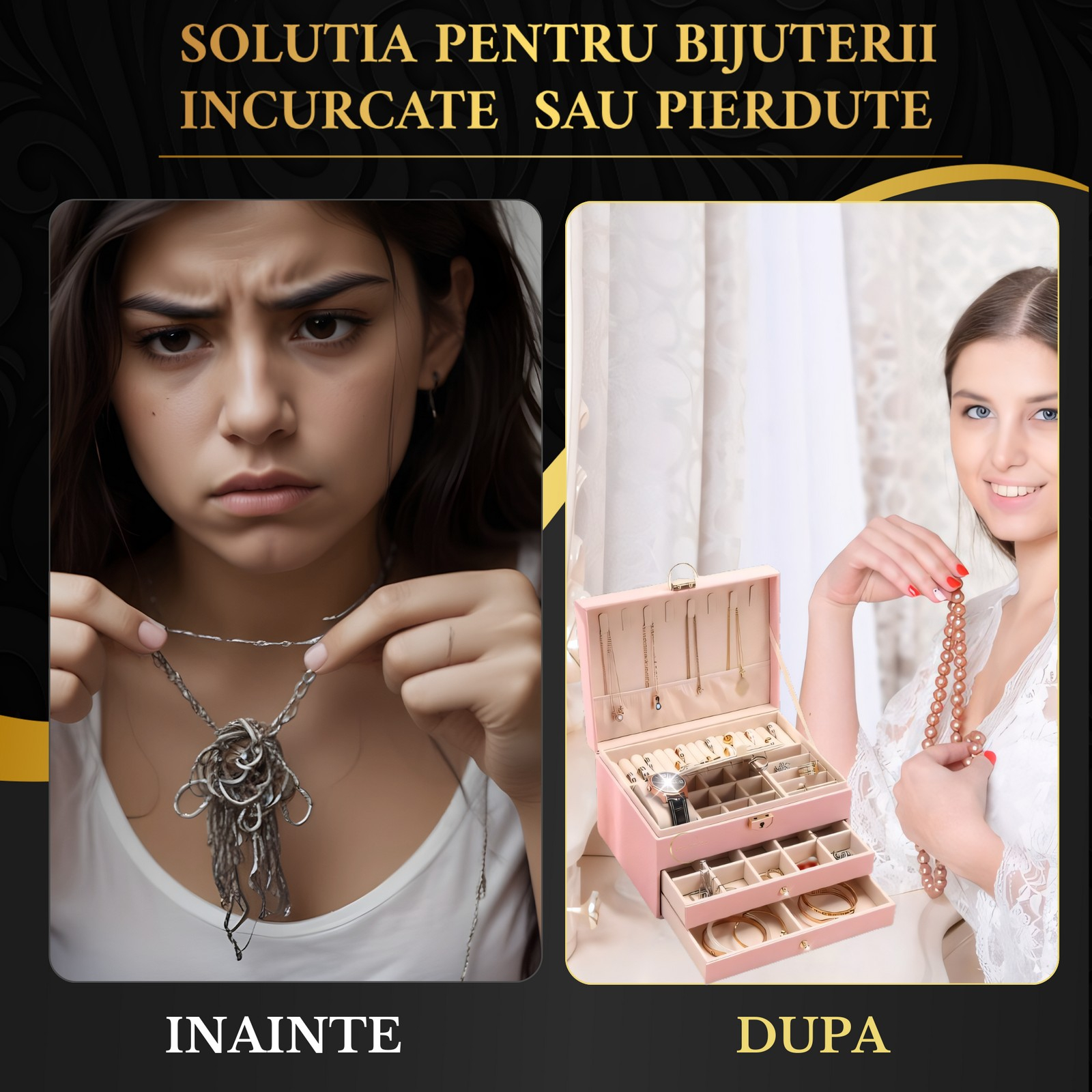 Cutie bijuterii 3 nivele - Organizare elegantă pentru comorile tale!