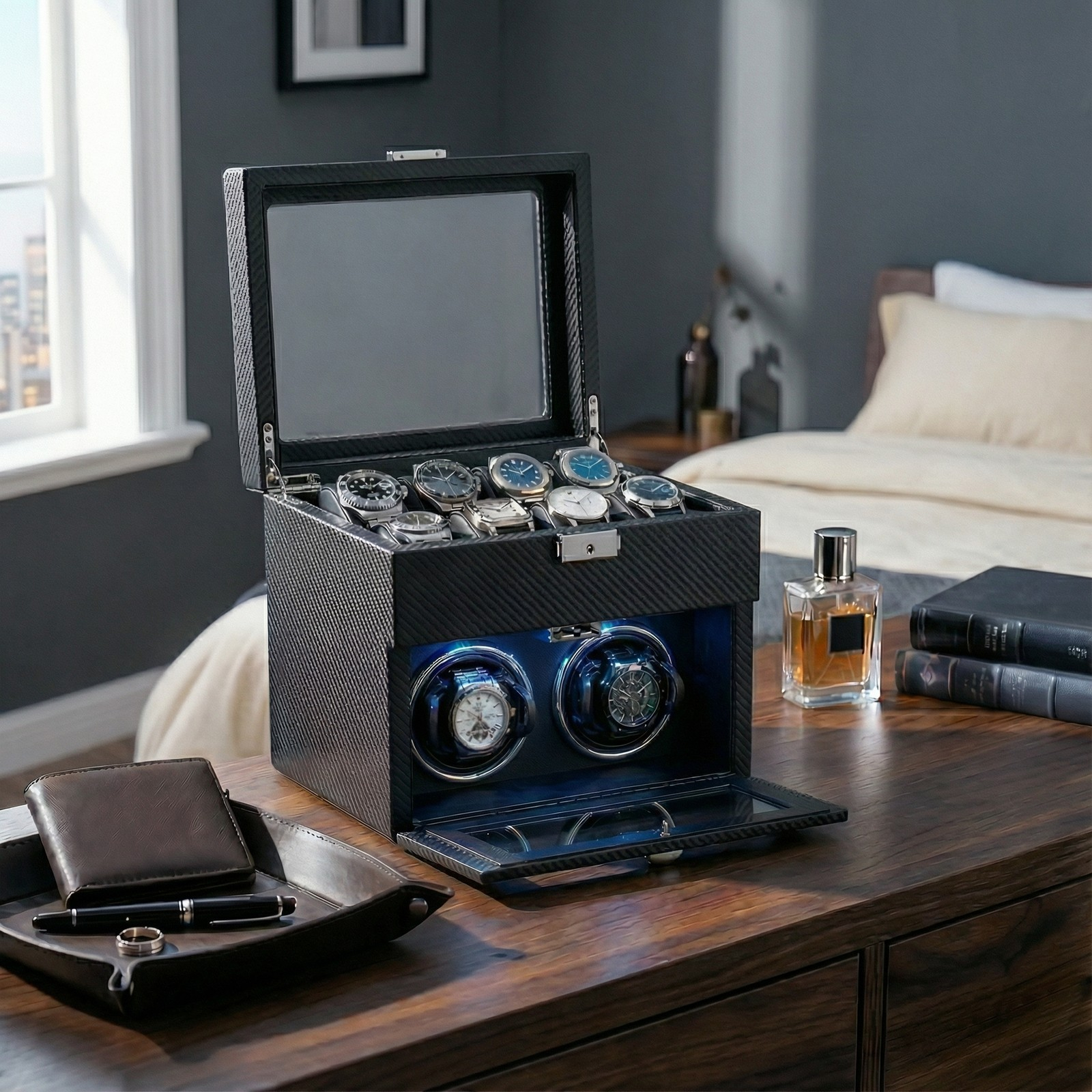 Ești un gentleman modern care apreciază luxul discret și rafinamentul atemporal? Ești un colecționar pasionat de ceasuri automate care caută un loc sigur și elegant pentru a-și păstra comorile?