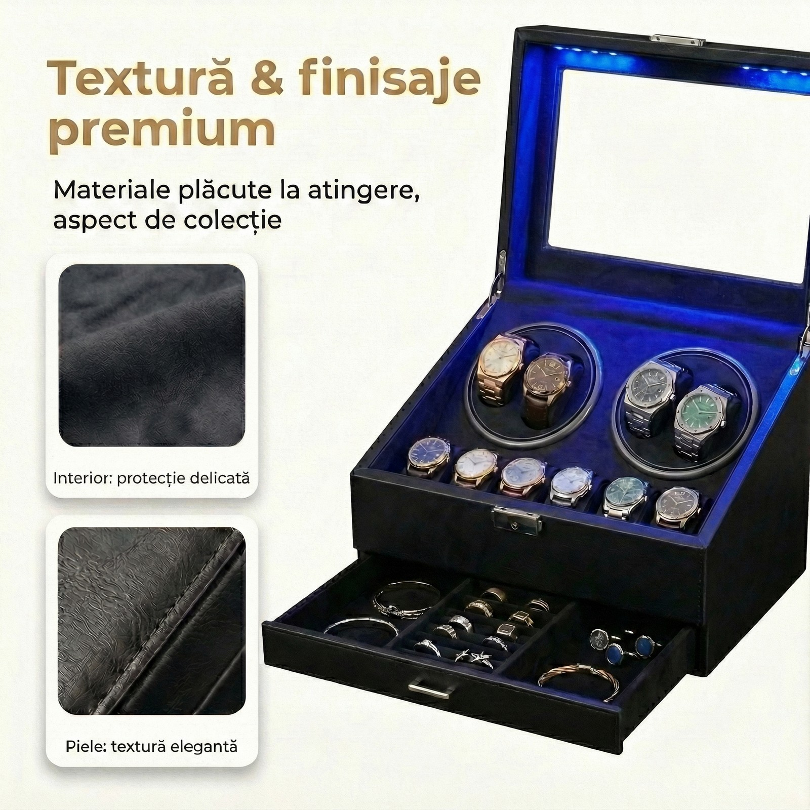 Un organizator complet pentru pasionații de ceasuri și accesorii premium.